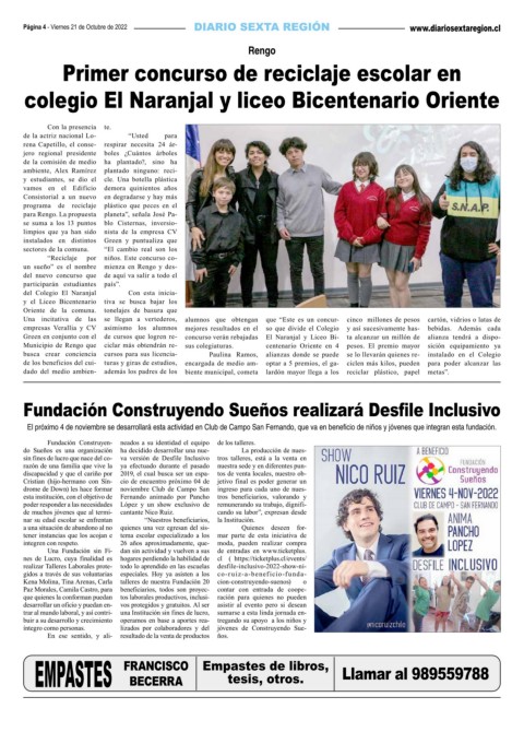 Municipio de Rengo que ciclar más obtendrán re- sus colegiaturas. centenario Oriente en 4 pesos. El premio mayor sición equipamiento ya