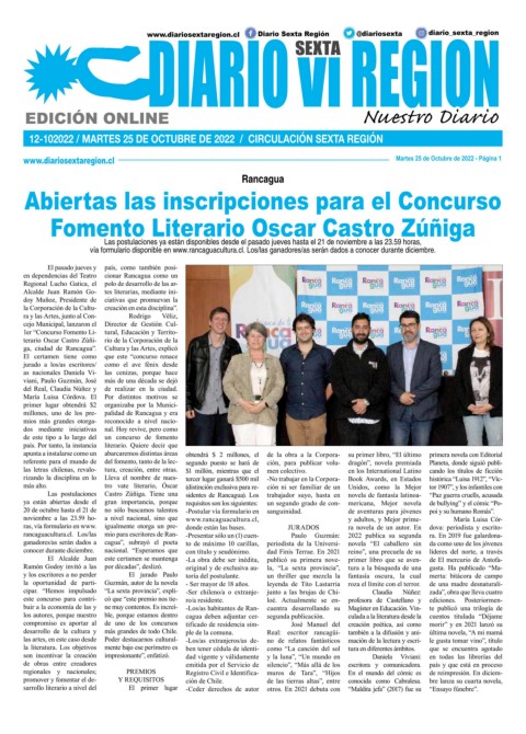 www.diariosextaregion.cl Martes 25 de Octubre de 2022 - Página 1