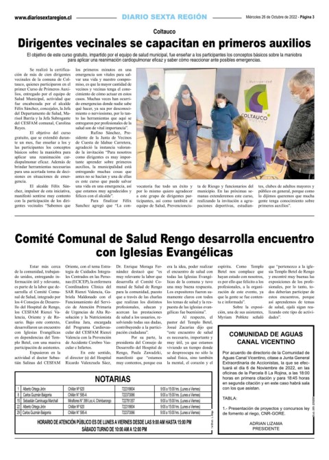 llo del Hospital de Rengo, cio de Atención Primaria profesionales, educan y puesta de las iglesias evan- Sobre la exposi- de salud, ojalá sigan rea-