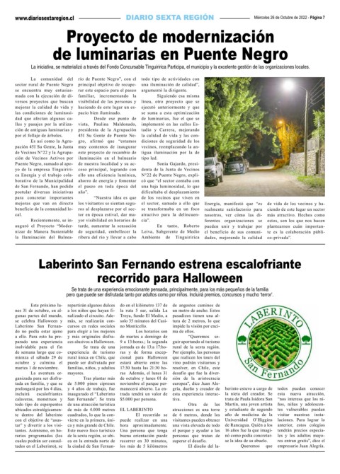yo de la empresa Tinguiriri- ceso principal, logrando con denta de la Junta de Vecinos