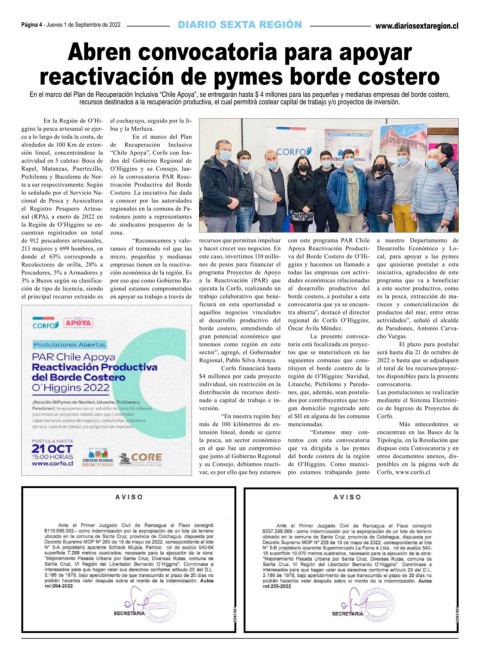 donde el 63% corresponde a micro, pequeñas y medianas este caso, invertimos 110 millo- va del Borde Costero de O’Hi- cal, para apoyar a las pymes