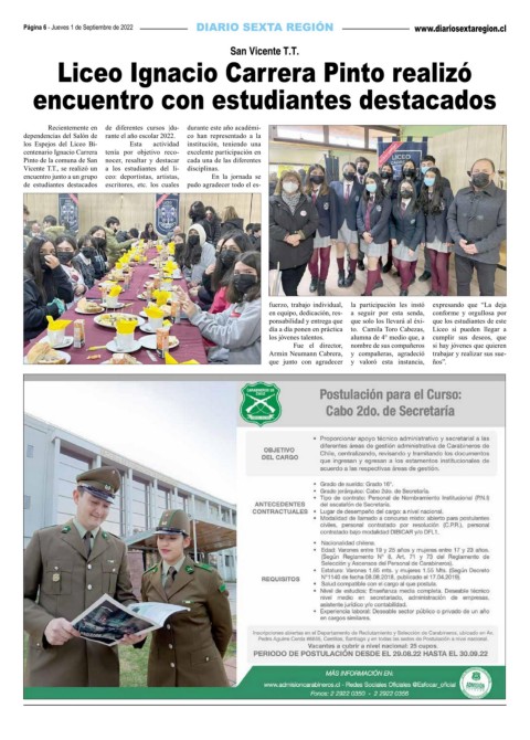 los Espejos del Liceo Bi- Esta actividad institución, teniendo una