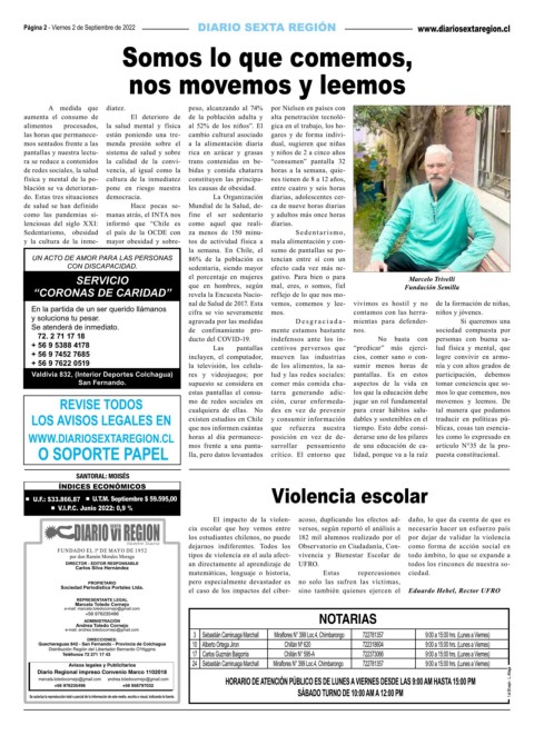 WWW.DIARIOSEXTAREGION.CL horas al día permanece- posición en vez de de- derarse uno de los pilares les como lo expresado en