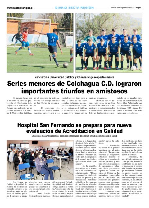 yección de Colchagua C.D. en San Carlos de Apoquin- sociales Colchagua agrade- sado miércoles, ya en San Jorge Silva Valenzuela. Así