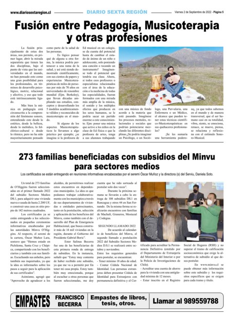 Pichilemu, Santa Cruz y Chépi- fue una de las beneficiarias de dios D.S.1 se realizará entre oc- tificado para acreditar la Perma- Social de Hogares (RSH) y no