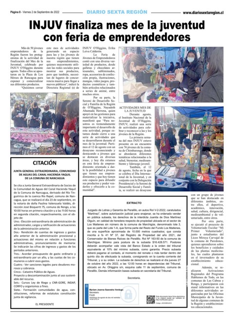 DE LA COMUNA DE NANCAGUA dimientos y que hoy tienen ional de la Juventud, y en