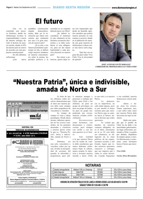 lo que es, “Nuestra Pa- ojos puestos en el futu- no lo es. El voto debe niendo a Chile y su gente