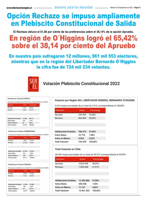 Rechazo Total Votación 724.234 100,00% Votación Plebiscito Constitucional 2022