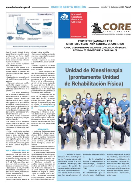 plementos: una silla firme sin SABE Chile de OPS (2001) arro- La Unidad de Reha- proceso de rehabilitación físi- músculo esquelética, manejo