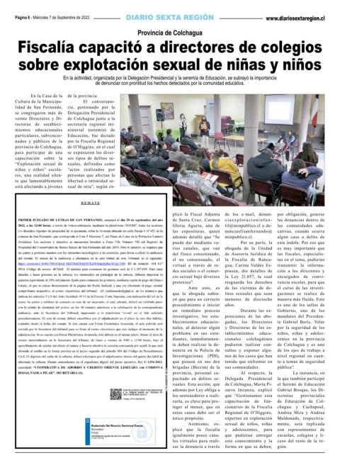 teger al menor, que en cionarios de la Fiscalía chagua y Cachapoal,