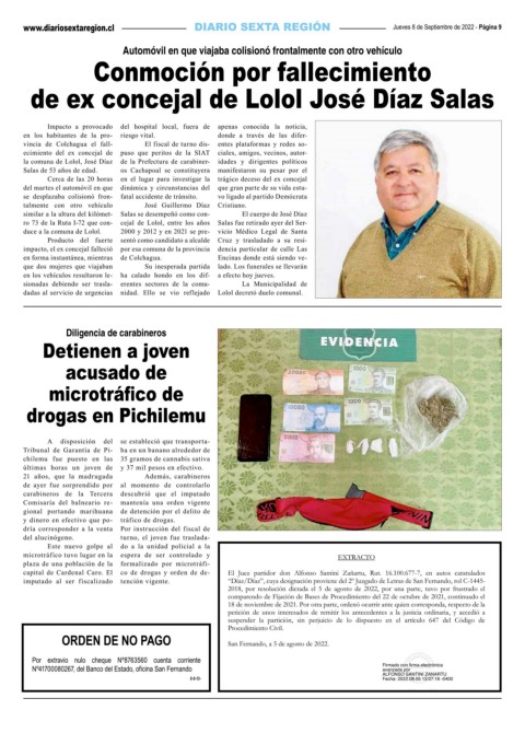 vincia de Colchagua el fall- El fiscal de turno dis- entes plataformas y redes so-