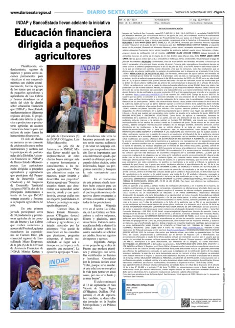 INDAP y BancoEstado llevan adelante la iniciativa RUC: 19- 2-1437648-5 Proc.: Ordinario Forma Inicio: Demanda