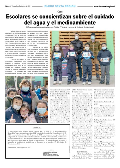 El Programa educativo es impulsado por División El Teniente y la Junta de Vigilancia Río Cachapoal