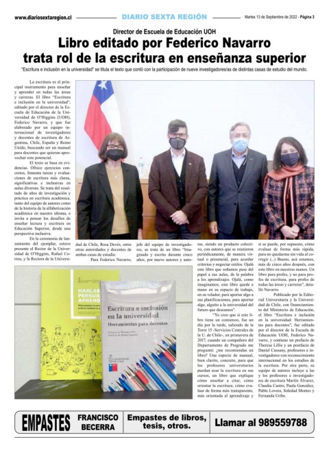 “Escritura e inclusión en la universidad” se titula el texto que contó con la participación de nueve investigadores/as de distintas casas de estudio del mundo.