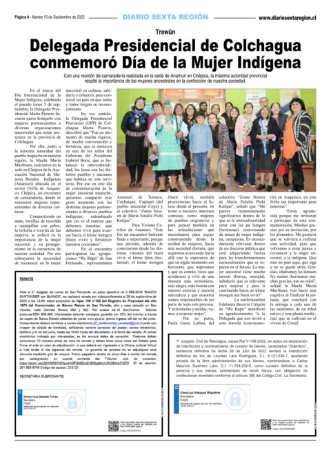 la tertulia o trawün de las debemos vivir para avan- trileo de Anamuri, “Este las 1º Juzgado Civil de Rancagua, causa Rol V-138-2022, en autos de declaración