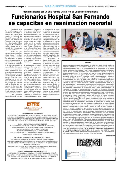 neonatología, sino que a cionarias fue muy acti- veces también se había 2022 a las 12.00 horas se rematará Lote A2-“b”, de la subdivisión del resto o parte no