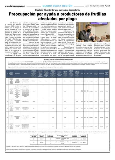 San Francisco de Mostazal, y del Seccionamiento de la Línea eléctrica 2x110 kV Sauzal – Alto Jahuel, ubicado en la Región Del Libertador Bernardo O’Higgins, Provincia de Cachapoal, comuna de Codegua.
