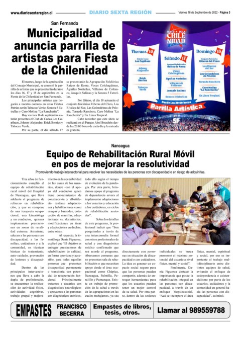 del Concejo Municipal, se anunció la par- Raíces de Roma, Voces Colchagüinas,