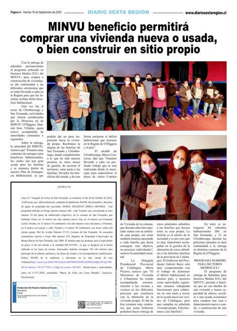 Bienes Raíces de San Fernando, año 2009. El mínimo para las posturas será el equivalente de Vivienda de la comuna, estos anhelados subsidios En total, se en-