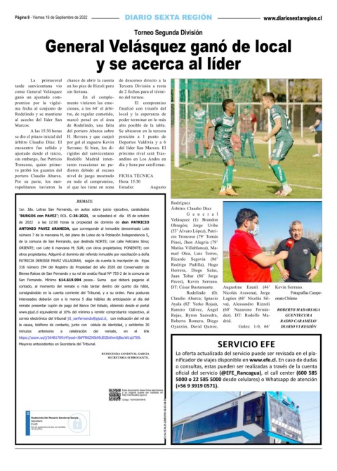 la causa, teléfono de contacto, junto con cédula de identidad, y exhibirlos 30 Oyarzún, David Quiroz, Goles: 1-0, 66’ DIARIO VI REGIÓN