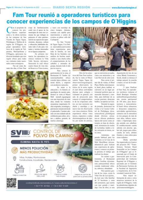 Página 12 - Miércoles 21 de Septiembre de 2022 www.diariosextaregion.cl