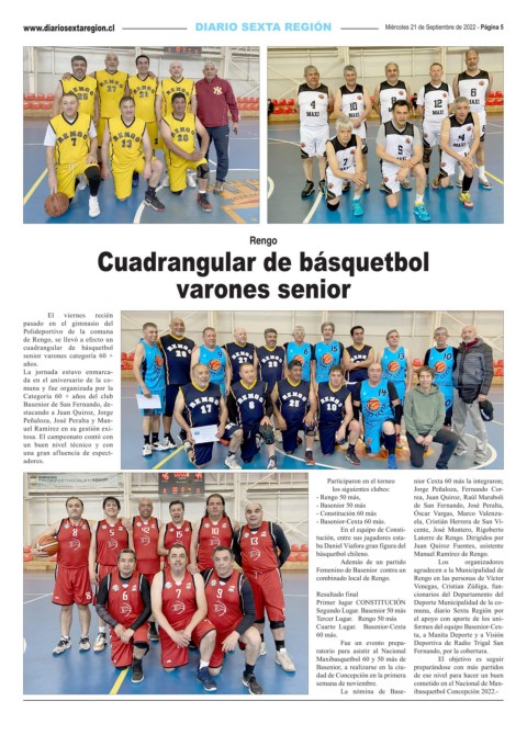 Segundo Lugar. Basenior 50 más muna, diario Sexta Región por