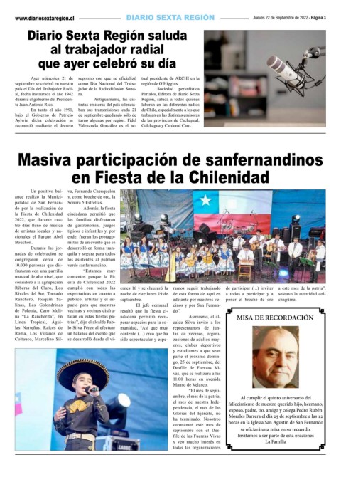 septiembre se celebró en nuestro como Día Nacional del Traba- región de O´Higgins.