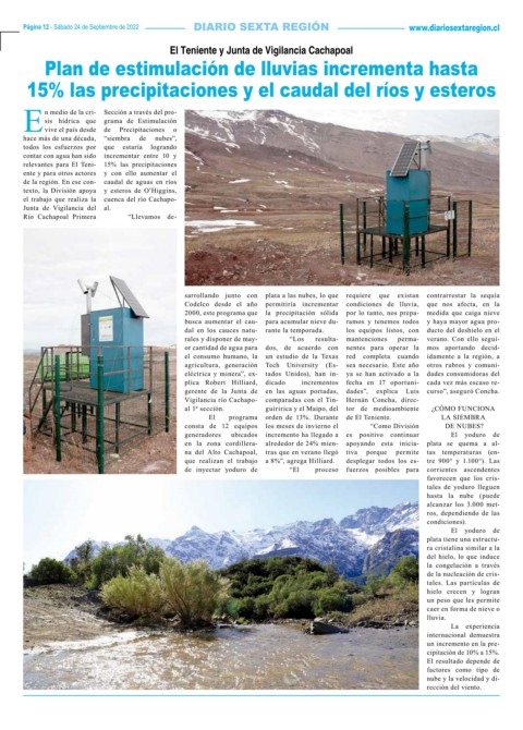 Página 12 - Sábado 24 de Septiembre de 2022 www.diariosextaregion.cl