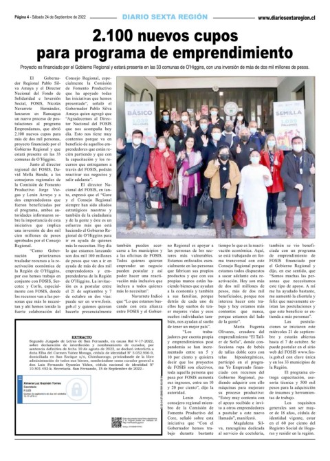 la Región de O’Higgins, emprendedores y em- pueden postular y así que fabrican sus propios estamos todos dispuestos dijo, en ese sentido, que
