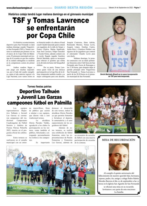 mañana domingo cuando Tinguiriri- con jugadores de la talla de Sergio y Joaquín López, Esteban Castro,