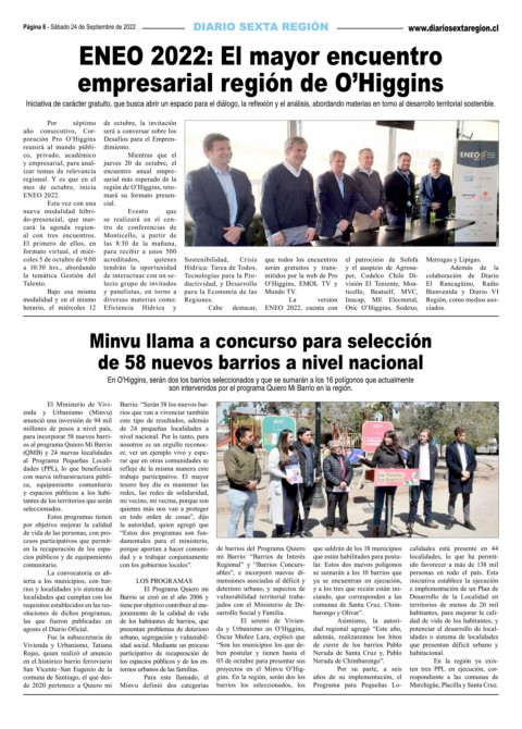 agosto el Diario Oficial. presentan problemas de deterioro da y Urbanismo en O’Higgins, dad regional agregó “Este año, potenciar el desarrollo de local-