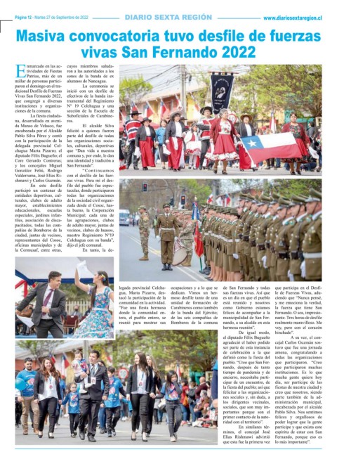 Página 12 - Martes 27 de Septiembre de 2022 www.diariosextaregion.cl