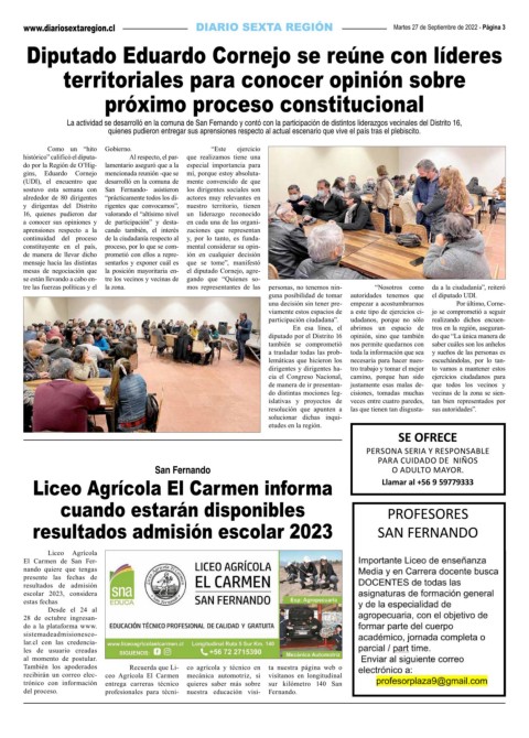Liceo Agrícola El Carmen informa Llamar al +56 9 59779333