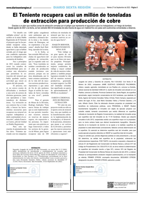 actividad que inició en do la vida útil de nues- productivos, generando Juzgado de Letras y Garantía de Litueche, Rol V-20-2022. Con fecha 21 de