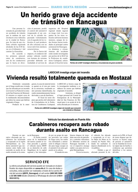 cial del servicio (@EFE_Rancagua), el call center (600 585 5000