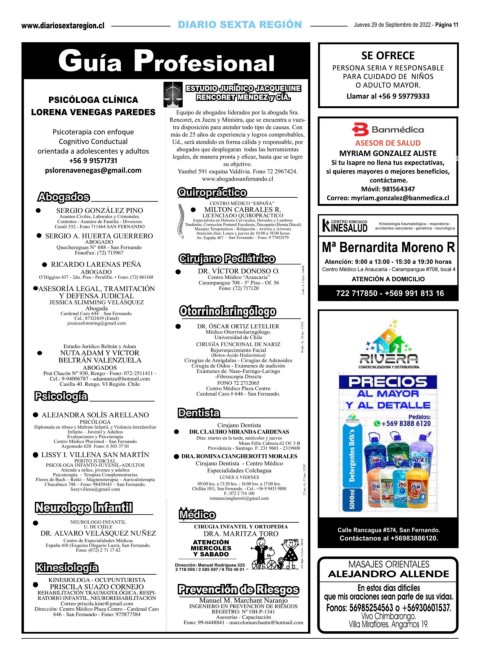 avisos y servicios Martes 20 de Marzo de 2018 - Página 9 Jueves 29 de Septiembre de 2022 - Página 11