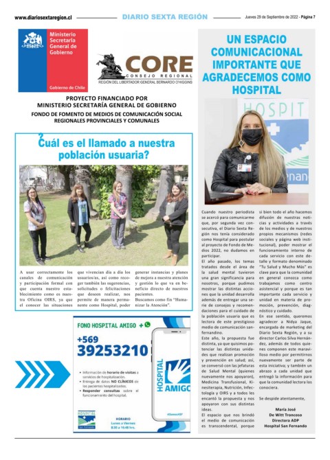 que cuenta nuestro esta- solicitudes o felicitaciones neficio directo de nuestros mostrar las distintas accio- asistencial y porque es tan