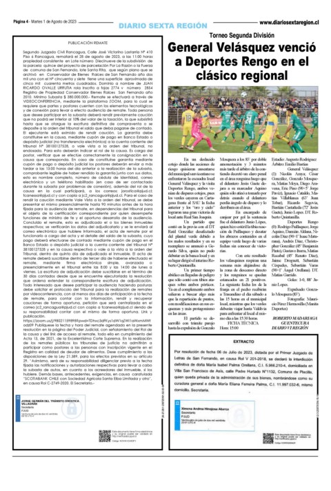 38 75 8 y en la causa respectiva o vale a la vista a la orden del Un partido que fue el delantero Junio Lópes, Deportes Rengo