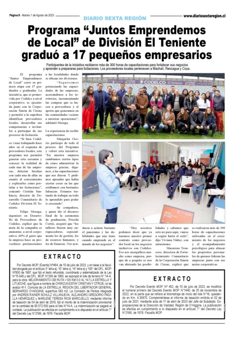 Por Decreto MOP. (Exento) Nº464, de 10 de julio de 2023, y en base a la facul- van abriendo las posibi- de Cirene, explicó que metas corporativas.