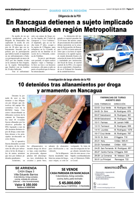 Asimismo, en cocaína y pasta base, cuyo origen, se está in- co Local. 30-31 La Principal Rancagua 722
