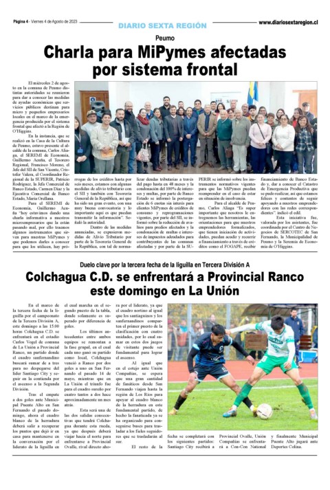 horas Colchagua C.D. se Los últimos an- clasificación con cuatro