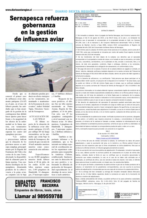 de influenza aviar 1° Del inmueble a subastar: Ante el Juzgado de Familia Rancagua, José Victorino Lastarria 410,