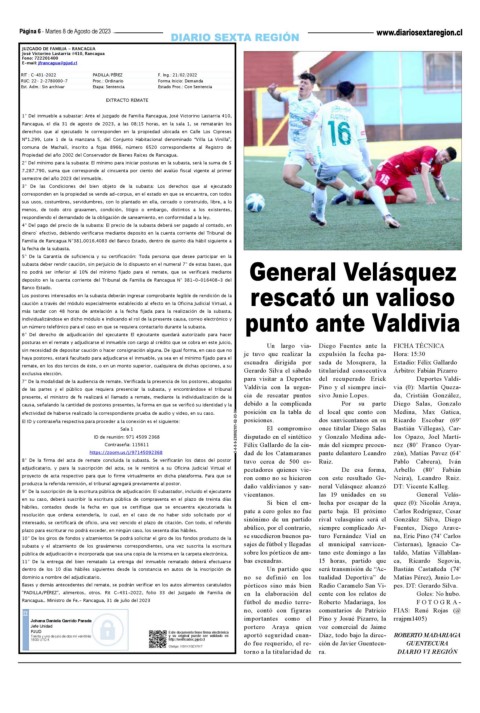 Rancagua.. Ministro de Fe.- Rancagua, 31 de julio del 2023 http://verificadoc.pjud.cl Félix Gallardo de la ciu- más del siempre preocu- nez (80’ Franco Oyar-