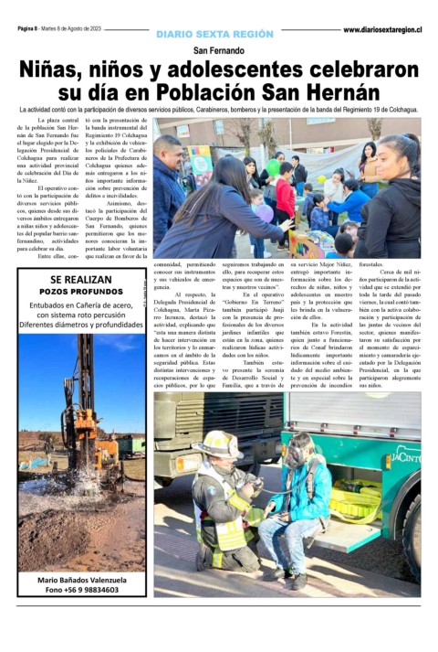 POZOS PROFUNDOS 11 jl.- hasta 16 ago.- gencia. Al respecto, la tras y nuestros vecinos”. rechos de niñas, niños y vidad que se extendió por