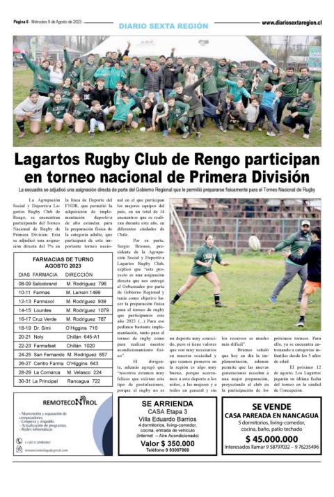 AGOSTO 2023 Lagartos Rugby Club,