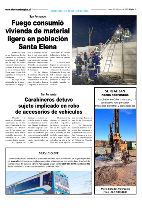 cuenta oficial del servicio (@EFE_Rancagua), el call center (600 585 5000 o 22 585 5000