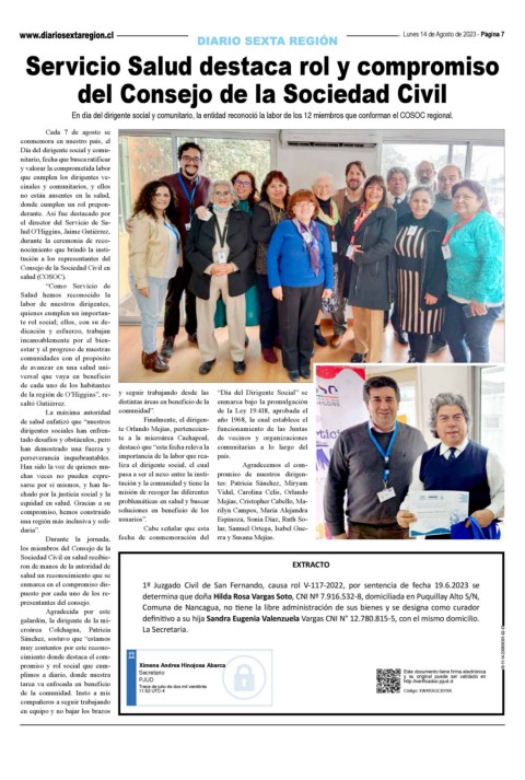 presentantes del consejo. 1º Juzgado Civil de San Fernando, causa rol V-117-2022, por sentencia de fecha 19.6.2023 se