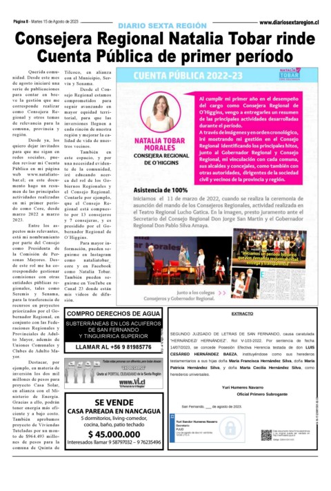 comuna de Quinta de San Fernando, ___ de agosto de 2023.