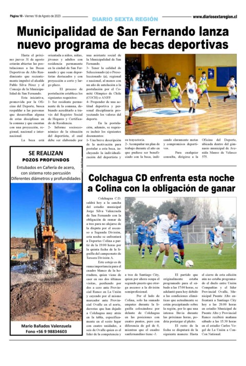 POZOS PROFUNDOS zación del deportista y ciado con la beca, indi- consulta, dirigirse a la 575.