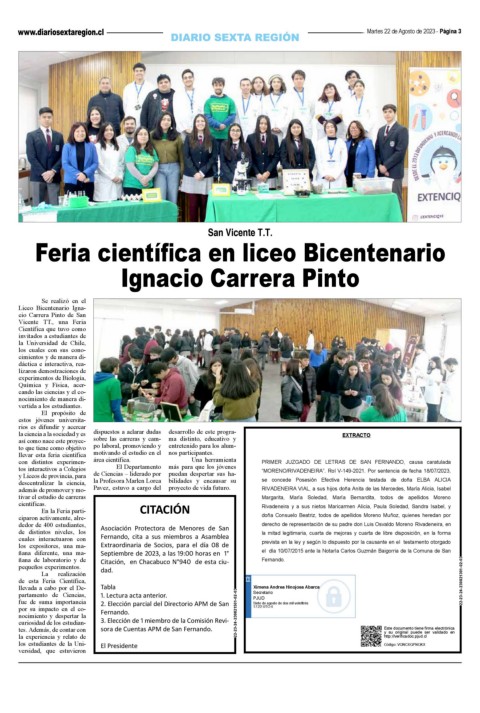 y Liceos de provincia, para de Ciencias – liderado por puedan despertar sus ha- “MORENO/RIVADENEIRA”. Rol V-149-2021. Por sentencia de fecha 18/07/2023,